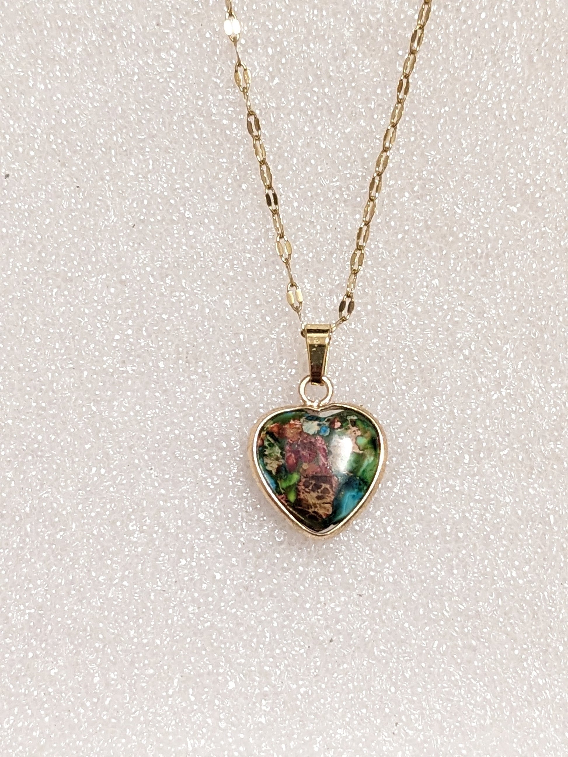 This elegant stone hangs on a specialty hollow length stainless steel chain.
